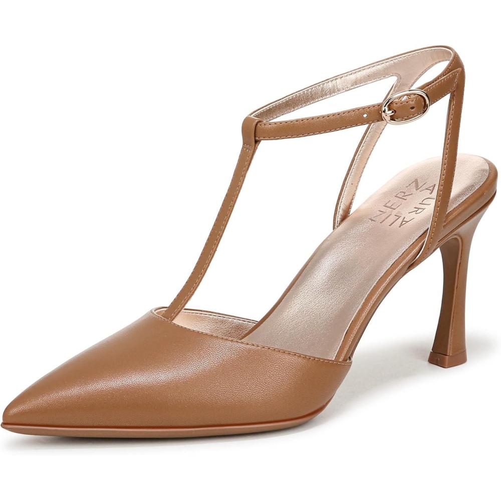 Naturalizer Women’s Astrid Pointed Toe T-Strap Pump(Café Leather)