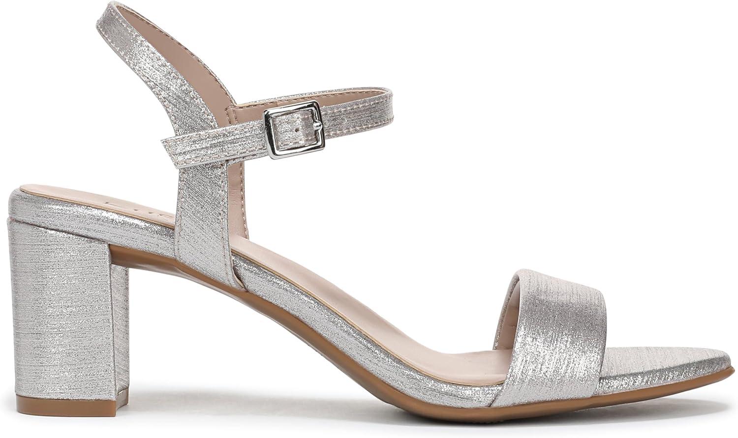 Minimal style, maximum comfort. The barely-there feel of this block heel sandal is thoughtfully crafted to take you from 9-5 and beyond. Get there beautifully. Versatile, minimal sandal with comfortable block heel. Manmade, leather, metallic manmade/jute, or metallic manmade upper with an almond toe. Solid or chainlink-adorned toe strap. Adjustable buckle closure. Contour+ technology for a premium fit and all-day comfort experience. 2 1/2 inch(es) block heel. Consciously packaged: 100% of our shoe boxes are made of 80% recycled paper + soy-based ink. Designed using sustainable materials. WHY YOU'LL LOVE IT: Ingenious elegant utility. All-day heels that scale the height of chic with endless versatility and comfort that is downright clever. Available in an inclusive size range of tough-to-find sizes and widths for a custom-designed fit and feel for all-day wear. The Shoe With the Beautiful Fit. Since 1927.