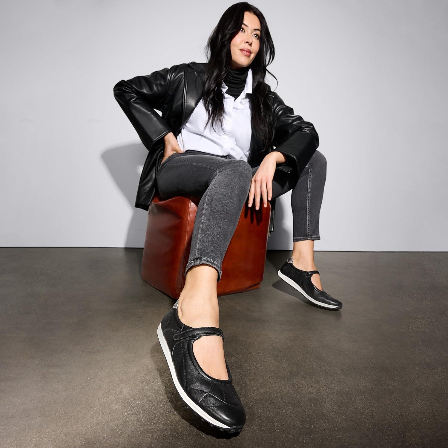 Sport meets chic: these Mary Jane flats feature Future Foam cushioning and an N Flex outsole for unstoppable days. Sporty Mary Jane sneaker with stitch detailing. Suede or leather upper with a rounded toe. Adjustable hook-and-loop strap. Future Foam footbed technology: Increased airflow, superior pressure absorption + distribution, extra support + stability, naturally moves with your foot. Contour+ Comfort technology for a premium fit and all-day ease. N Flex outsole: Next-level flexibility, cushioning, longevity, and shock absorption to energize your every move. 0.5 inch platform, 1 inch flat heel. Consciously packaged: Our shoe boxes are 100% Forestry Stewardship Council mix certified. Designed using some environmentally preferred materials. WHY YOU'LL LOVE IT: Forever elegant silhouettes with all day wearability, available in an inclusive range of sizes and widths. Designed to the contours of a woman's foot. The Beautiful Fit. Since 1927.